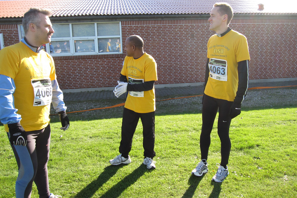 Det startede i hvert som en kold lørdag. Nok den koldeste dag dette efterår, for termometeret havde sneget sig ned omkring 4 grader om morgenen. Efter en morgenmad bestående af en hjemmebagt bagel og nogle tørre havrefras (vi var løbet tør for mælk derhjemme), kom jeg i løbetøjet og cyklede hen til Jonas hvor holdet skulle samles før vi i fælles flok tog ud til løbet. Hos Jonas mødte jeg de to andre sløve bananer: Kent, som var genganger fra sidste år, og Thomas der for første gang skulle prøve at løbe 12 km… og hvilke 12 km.
