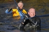 Selvom jeg ret hurtigt vænnede mig til mudder og våde løbesko, var jeg dog ikke helt forberedt på især to af forhindringerne. Den ene var hvor man skulle løbe hen over noget brændende træ, for derefter at kaste sig ned i en stor balje med (meget koldt) vand. Det var slemt nok, men midtvejs gennem denne balje vand var der en pæl på tværs som man skulle under, hvilket betød at man skulle have hele hovedet under vand. Og til sidst skulle man op igen, hvilket jeg nok ikke gjorde på den mest elegante måde. Den anden forhindring var den klassiske med at man går på et reb, og holder fast i et andet. Denne gang over en sø, men da der var så mange der hev og sled i rebet var det helt umuligt at holde balancen, og jeg valgte i stedet bare at svømme/gå/trække mig gennem søen over på den anden side. Vandet var iøvrigt ganske koldt, men i det mindste fik jeg skyllet noget mudder af mig. TV2 Østjylland har en meget kort rapportage fra løbet (hvis I kan finde den) hvor man kan se disse to forhindringer. Det er egentlig sjovt, men når pulsen er godt oppe og man har varmen af at løbe, så er man faktisk ligeglad med at skulle hoppe ned i noget i iskoldt vand. Det er bare en forhindring man skal igennem, og så videre.