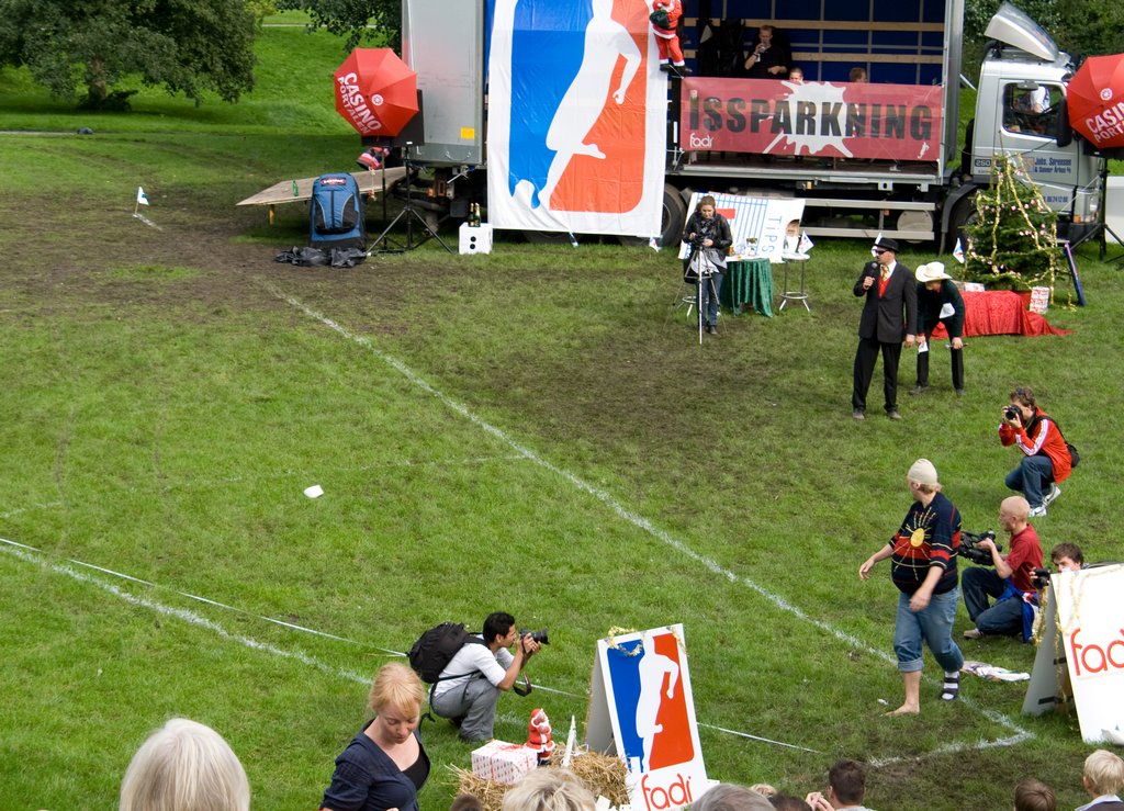 I går var jeg til VM i issparkning 2008, sammen med Jonas og Dong, som blev afholdt i Botanisk Have i Århus. Bag arrangementet stod FADI (Foreningen af Danske Issparkere) som har stået for arrangementet siden et par århusianere en dag i 1995 havde to liter vaniljeis til overs, og i stedet for at lade den gå til spilde, prøvede hvor langt man kunne sparke den med bar fod.